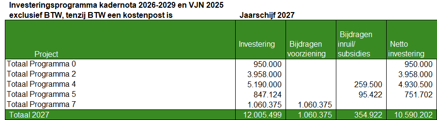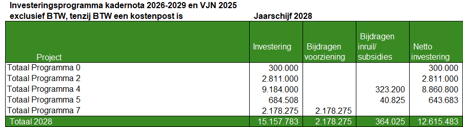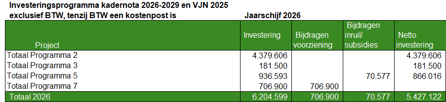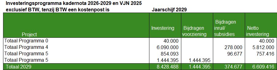 Dit betekent dat in de boekwerken kadernota en begroting het investeringsprogramma alleen gecomprimeerd op totaalniveau per programma wordt opgenomen. De detailinformatie en de wijzigingen worden in een bijlage verstrekt. De bijlage is niet actief openbaar. Op deze wijze wordt voorkomen dat inschrijvers bij aanbestedingen voortijdig informatie kunnen vinden over de raming van projecten bij de gemeente en daar met de inschrijving op kunnen inspelen.