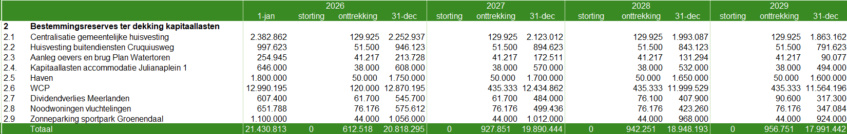 Totaal | Onttrekking aan reserve | -4.573 | -4.761 | -1.630 | -1.912 | -1.671 | -1.657 | |