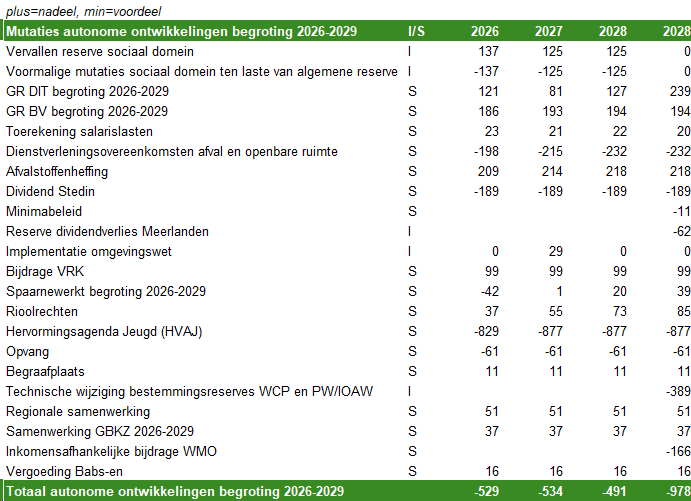 - mutaties die nu in de begroting 2026-2029 worden voorgesteld.