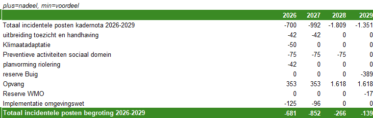 Een overzicht van alle incidentele baten en lasten met toelichting uit de begroting 2026-2029 is opgenomen bij de financiële begroting "overzicht incidentele baten en lasten".