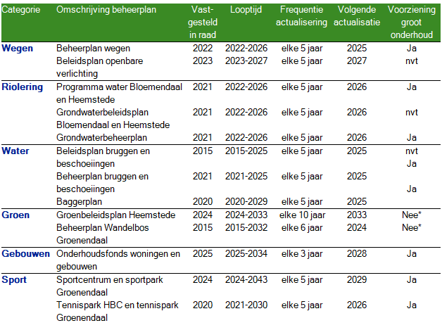 Overzicht beheerplannen kapitaalgoederen